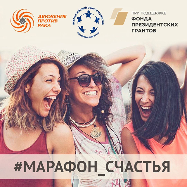 Проект «Марафон Счастья» реализуется в рамках проекта Всероссийского Союза пациентов «Организация пациентов: защита, сопровождение, развитие», реализуемого с использованием гранта Президента Российской Федерации на развитие гражданского общества, предоставленного Фондом президентских грантов.